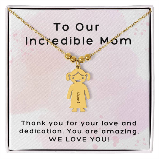 Incredible Mom, Thank You for Your Love, Custom Engraved Kid Charm Necklace