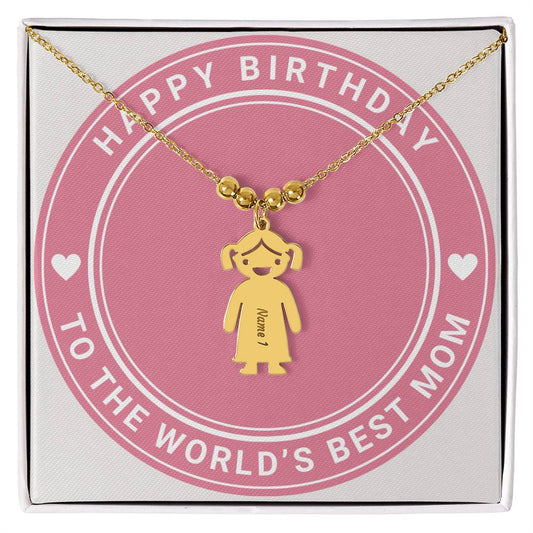 Happy Birthday To The World's Best Mom, Custom Engraved Kid Charm Necklace