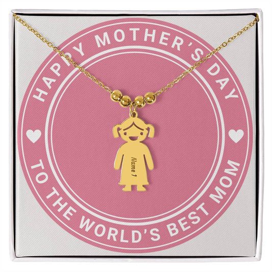 Happy Mother's Day To The World's Best Mom, Custom Engraved Kid Charm Necklace