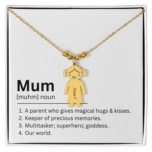 Mum Definition, Magical Hugs And Kisses Custom Engraved Kid Charm Necklace