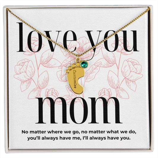 Love You Mom, I'll Always Have You, Custom Engraved Baby Feet with Birthstones Name Necklace