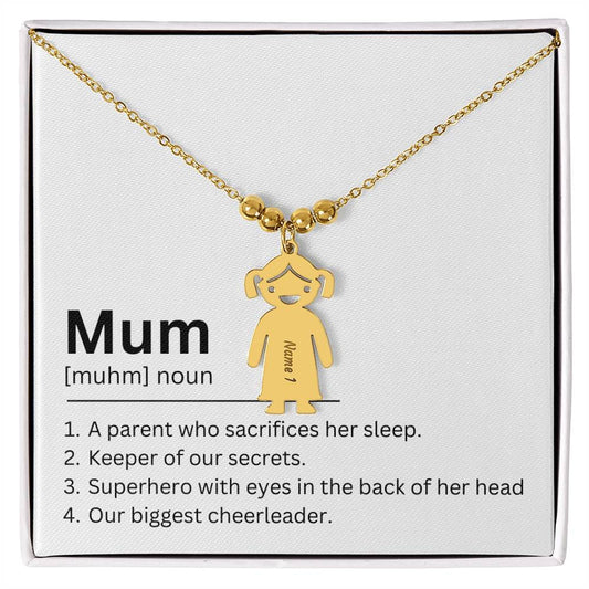 Mum Definition, A Parent Who Sacrifices Her Sleep Custom Engraved Kid Charm Necklace