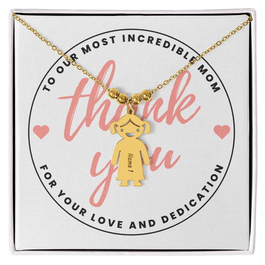 Thank You For Your Love And Dedication, For Mom Gift Custom Engraved Kid Charm Necklace