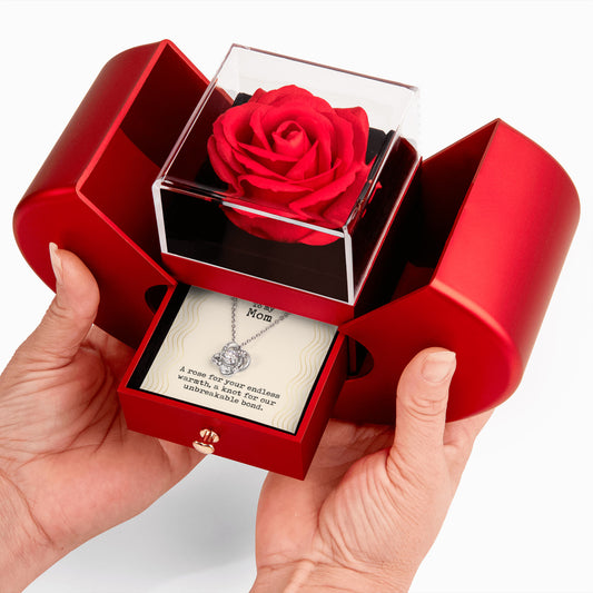To My Mom Gift, A Rose For Your Warmth Message, Love Know Necklace in Red Heart Rose Box