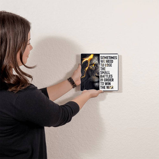 Lion Art In Order To Win Positive Motivation Room Decor Square High Gloss Metal Art Print
