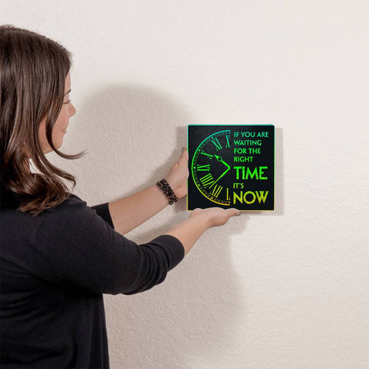 The Right Time is Now Positive Motivation Room Decor Square High Gloss Metal Art Print