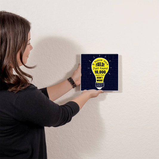 I Have Not Failed Thomas Edison Light Bulb Positive Motivation Room Decor Square High Gloss Metal Art Print