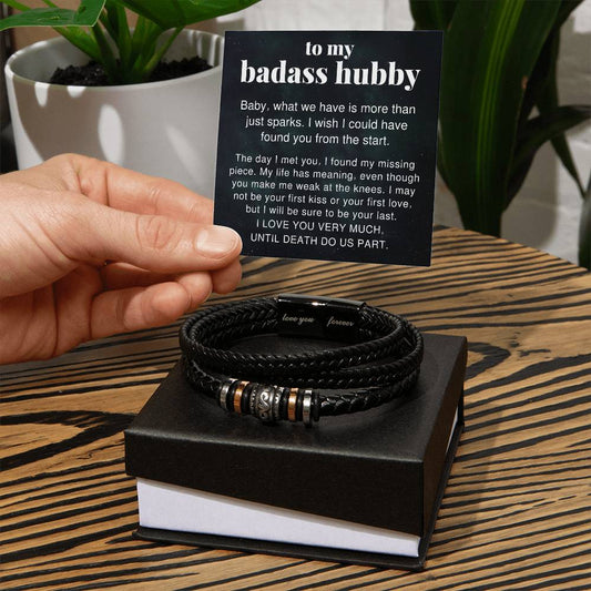 To My Badass Hubby Till Death Do Us Part Braided Vegan Leather Men Bracelet