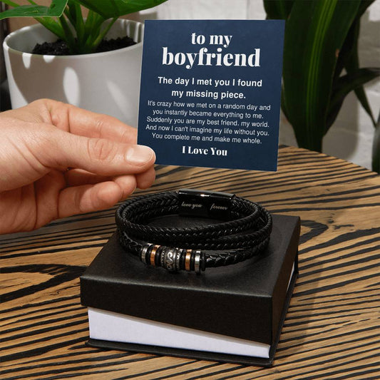 To My Boyfriend, You Complete Me Braided Vegan Leather Men Bracelet
