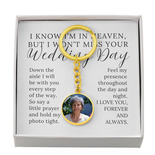 Wedding Memorial Keepsake Gift for Bride, Custom Photo Keychain Charm