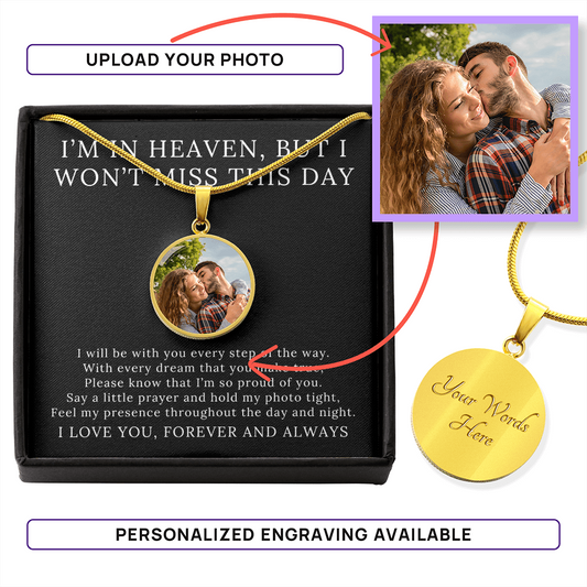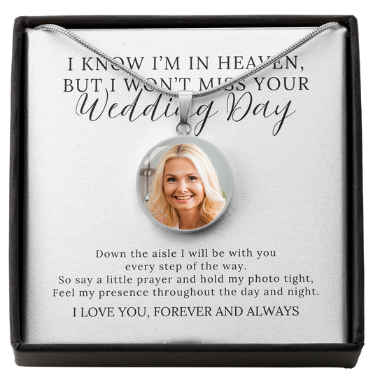 I'm in Heaven on your Wedding Day Memorial Condolence Gift, Circle Photo Necklace