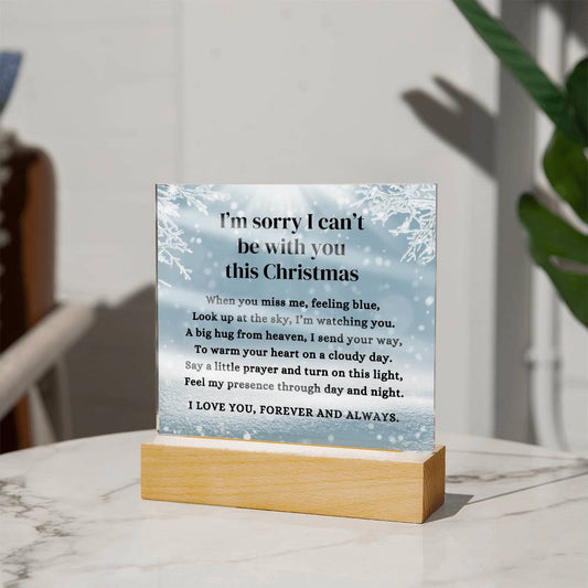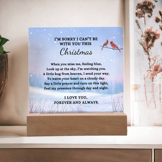 Blue Sky I Can't Be With You This Christmas Poem Condolence LED Nightlight Acrylic Desktop Art (USB Powered)