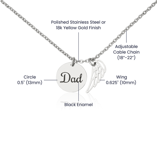 In Loving Memory of Your Father, Remembrance Poem, Dad Memorial Angel Wing Necklace Gift