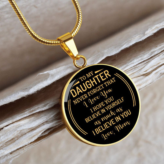 To My Daughter Never Forget That I Love You From Mom Round Pendant Necklace (Optional Engraving)