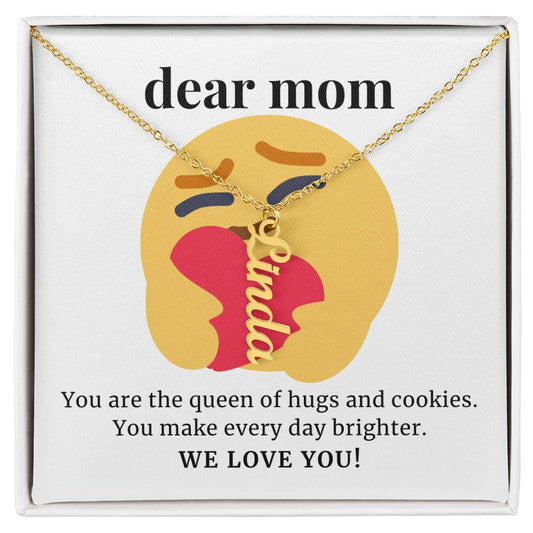 To Mom Gift, Queen of Hugs And Cookies, Custom Multi Children Name Necklace