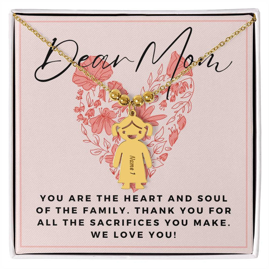 To Mom Gift, Heart And Soul of the Family Custom Engraved Kid Charm Necklace