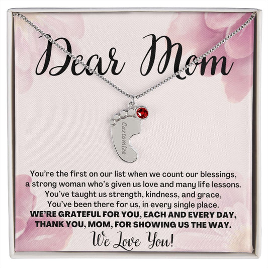 To Mom Gift From Kids, We Love You Custom Baby Feet Necklace with Birthstone