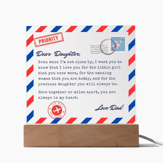 Letter to Daughter Gift, Dad to Daughter Long Distance Connection, Vintage Airmail Postcard Acrylic Plaque Gifts, Living Away From Home