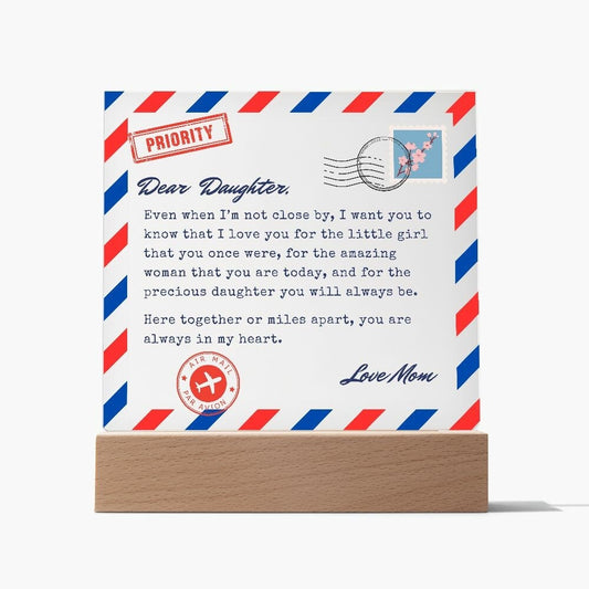 Letter to Daughter Gift, Mom to Daughter Long Distance Connection, Vintage Airmail Postcard Acrylic Plaque Gifts, Living Away From Home