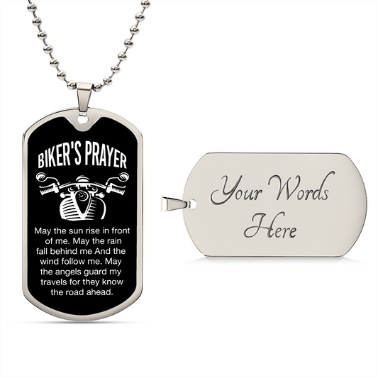 Biker's Prayer Dog Tag Necklace Gift For Him
