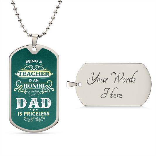 Being a Teacher is an Honor, Being a Dad is Priceless, To Dad Gift Dog Tag Necklace For Father's Day