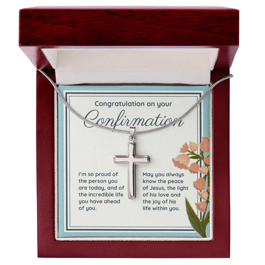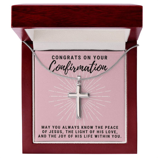 Confirmation Gift for Her, May You Always Know the Peace of Jesus Stainless Steel Cross Necklace