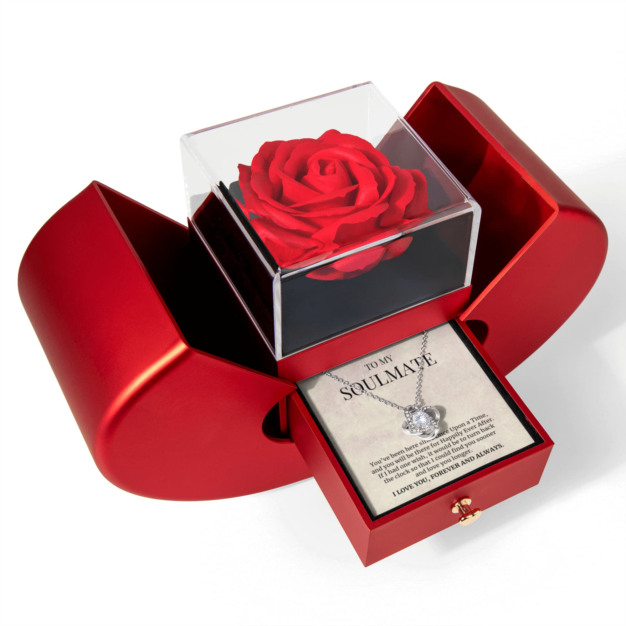 To My Soulmate Gift, Once Upon a Time, Forever Love Necklace with Red Heart Rose Box