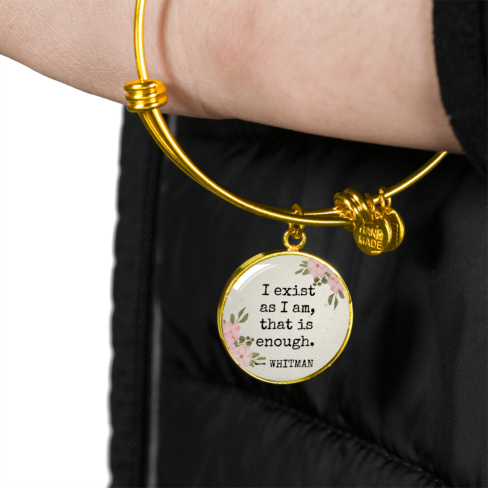 I exist as I am, Walt Whitman Quote, Engravable Charm Bangle
