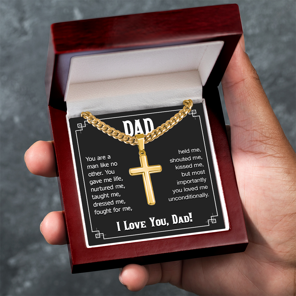 Gift For Dad, You Are a Man Like No Other, Cuban Chain Cross Necklace
